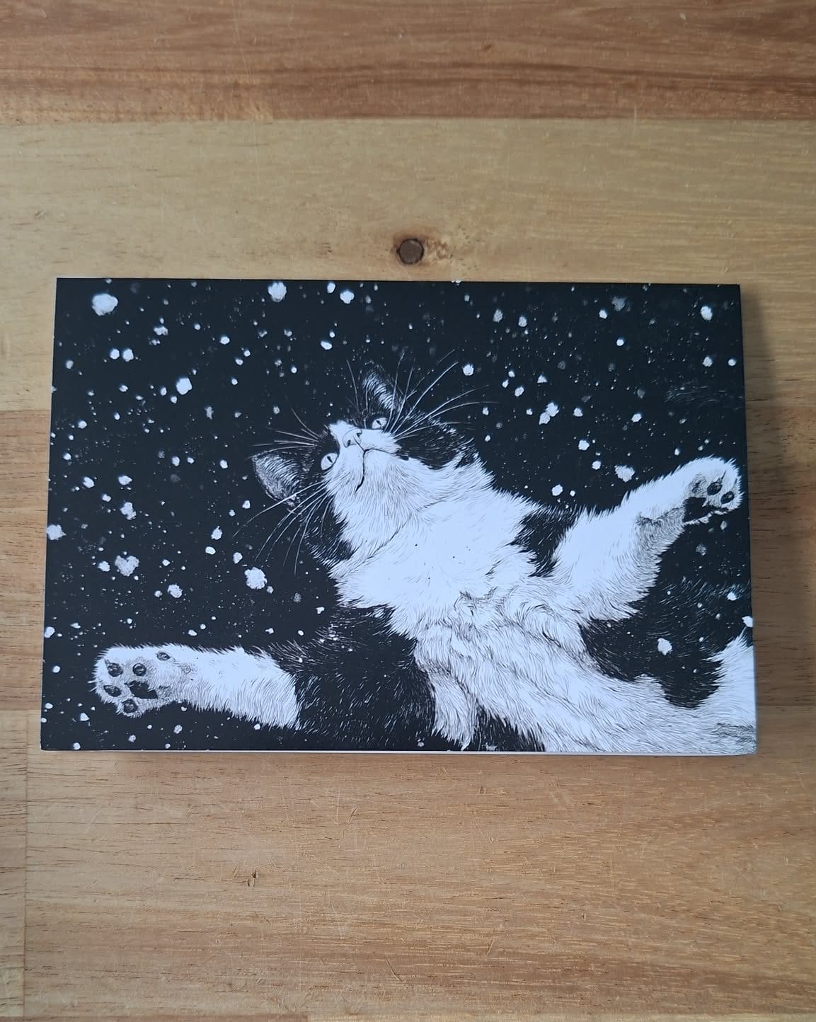 Gevouwen kerstkaart – zwartwitte kat in de sneeuw 5