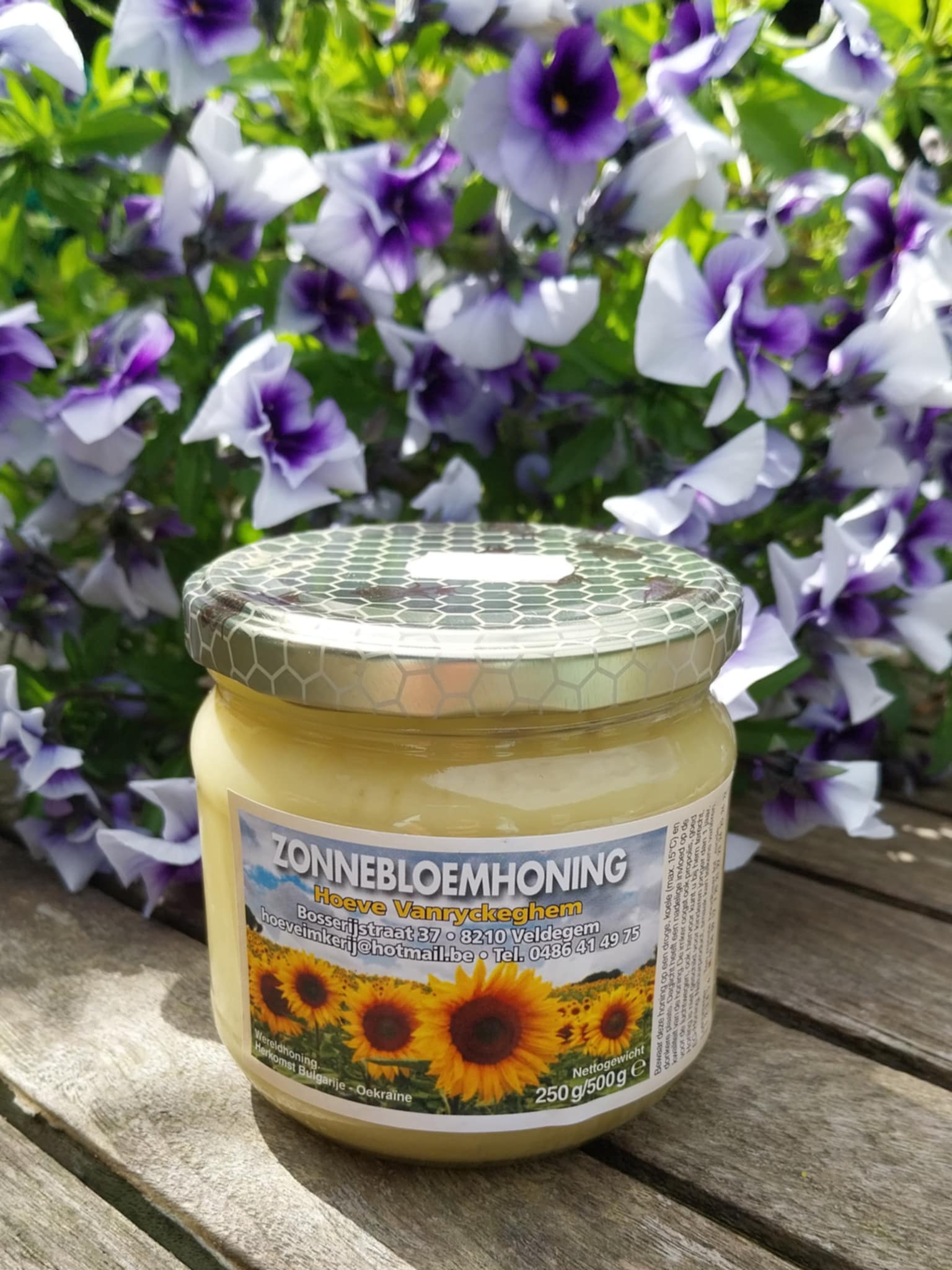 Heerlijk zachte honing van goudkleurige zonnebloemen.